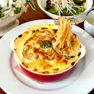 ◆グラタン仕立てパスタ/シーフードのトマトソース
