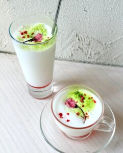 ・わらび餅、桜の塩漬けいちご