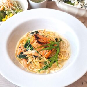 ◆グリルサーモンとほうれん草のクリームパスタ